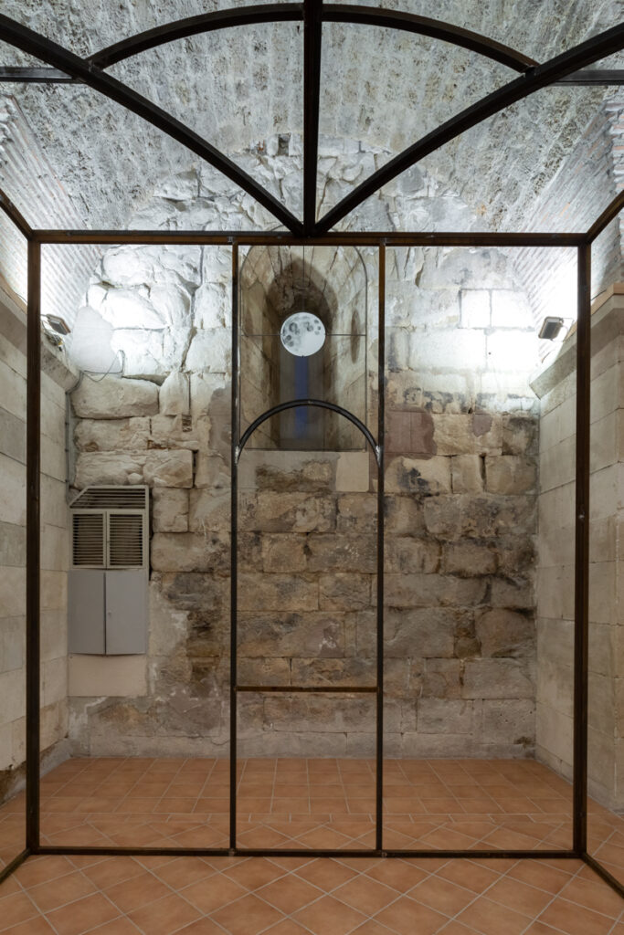 Tuazon’s engagement with the cultures of the Indigenous peoples of the Pacific Northwest, particularly the Salish, is woven into the artist’s mental and spatial horizon. Raised and shaped in this region, he absorbed a context in which the connections between space, community and construction are firmly rooted in local cultural practices. This influence is not expressed as quotation or illustration, but as an ethical and spatial sensibility, a vision of space as a common good, of building as a collective act, and of shelter as a site where humans and nature come together. In this sense, Tuazon’s architecture also serves as a gesture of remembrance, a reminder that building was once inseparable from community, territory and the natural environment. In the Kula Gallery, this aspect is felt with particular clarity. The historic structure, originally built for defence and surveillance, encounters a work that suggest openness and dialogue. Here, monumentality stems from the weight of meaning rather than physical scale. Small scale thus becomes a site for profound reflection: on interior and exterior, security and vulnerability, permanence and transience. As a result, Tuazon’s construction is not merely an object occupying space; it becomes a space in the very act of coming into being.